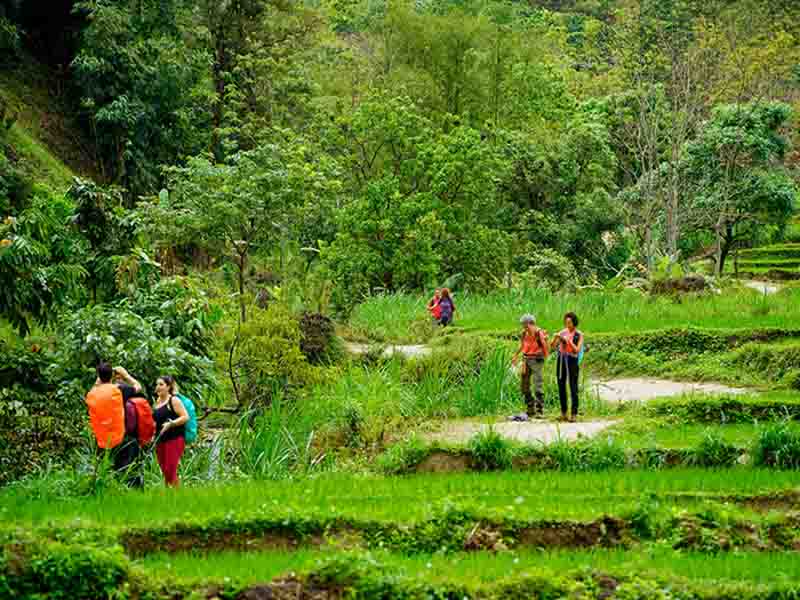 07:00: Start early to descend into the beautiful valley facing the Retreat where you walk around tumbling rice terraces. Trek through small paths shrouded in vegetation to slowly reveal a picturesque village sitting at the base of a towering mountain. Your camera will not be able to sit still!